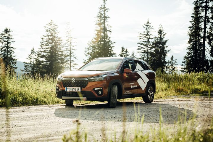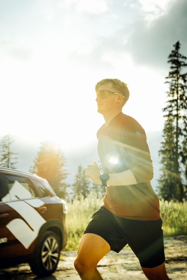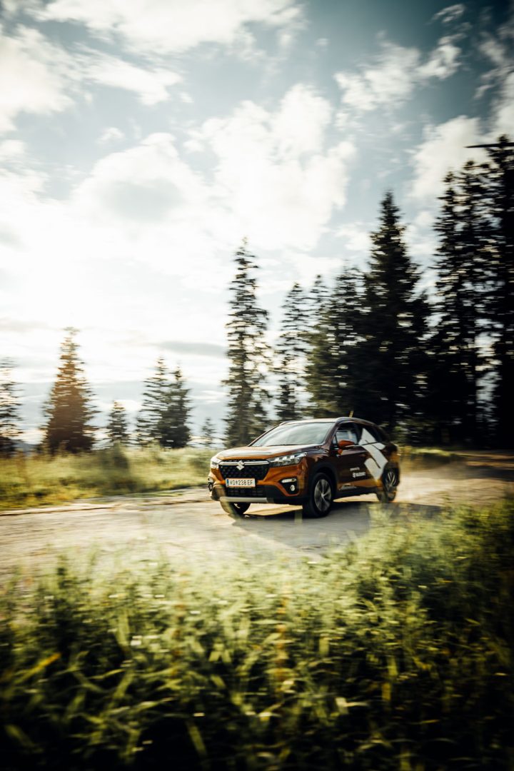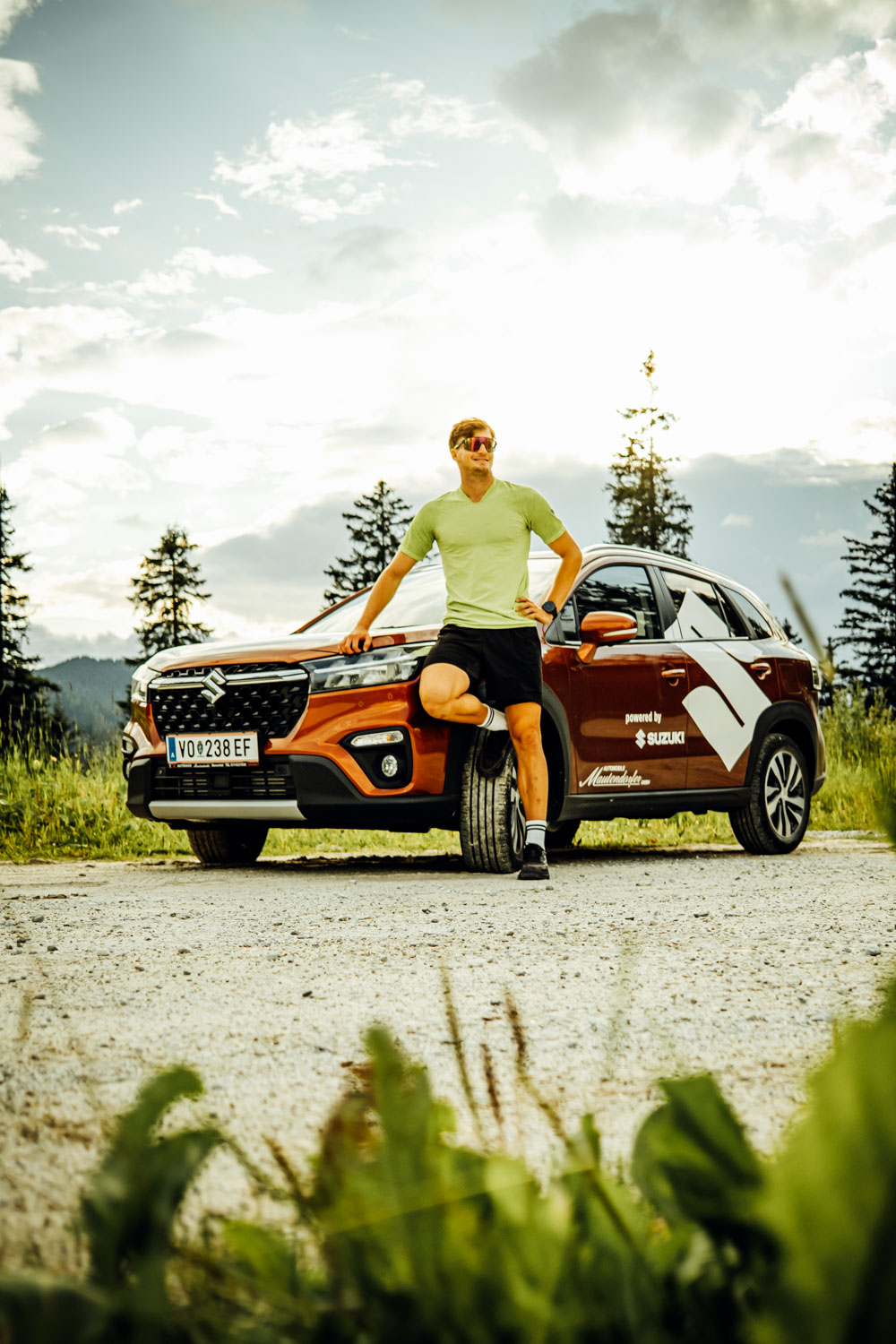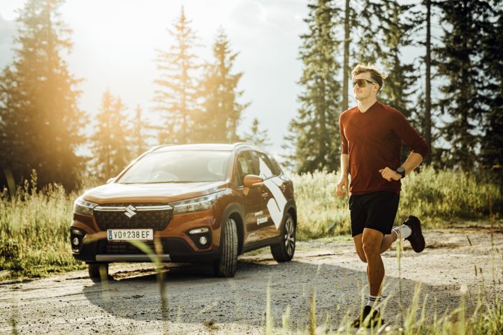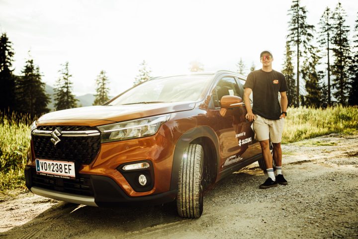 Athleten Werbefotos mit neuem Auto für die kommende Snowboardsaison